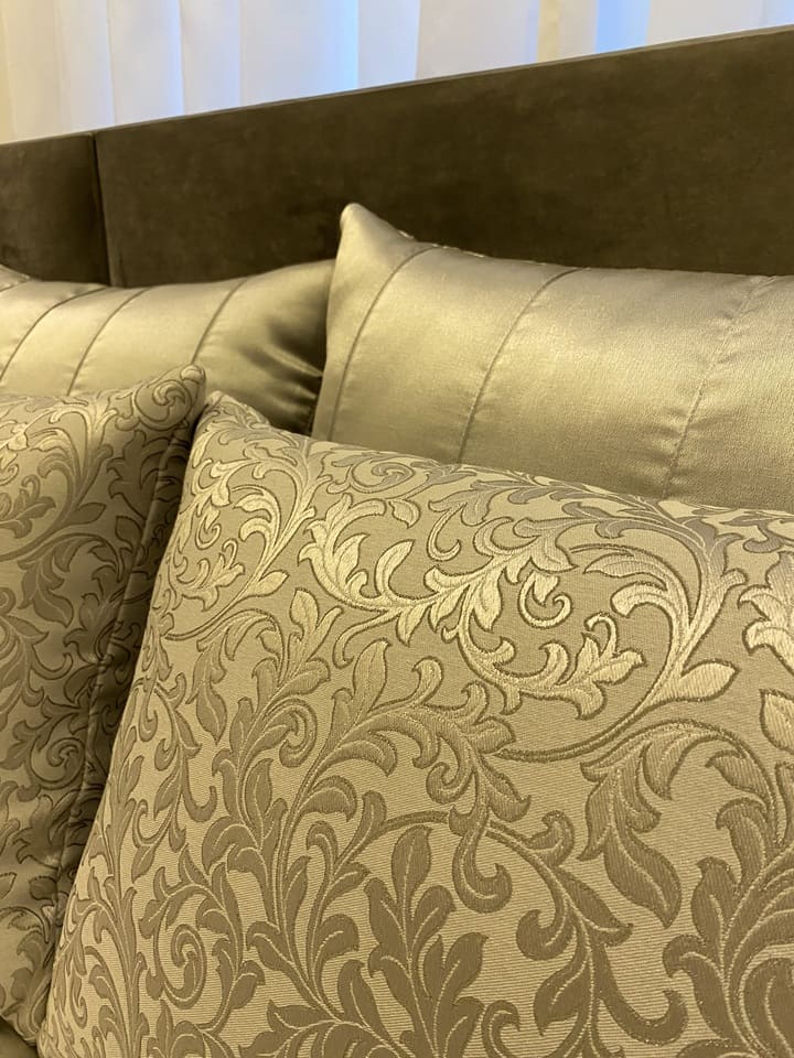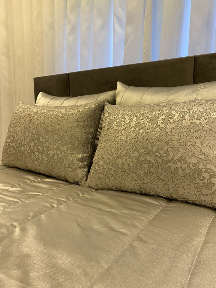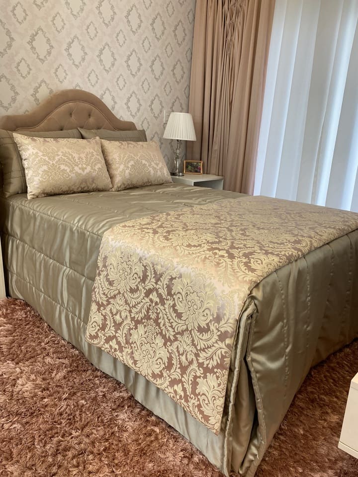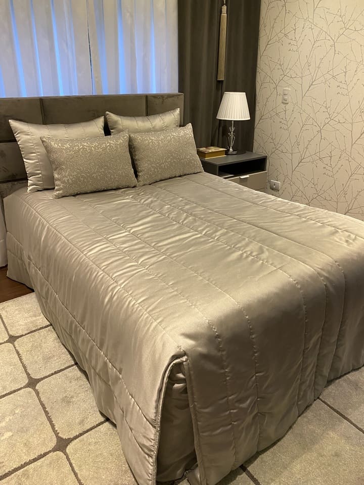 Feitas sob medida para se encaixar na sua cama, escolha um tecido que combine com as cortinas ou ate o mesmo tecido, faça um composê de almofadas.