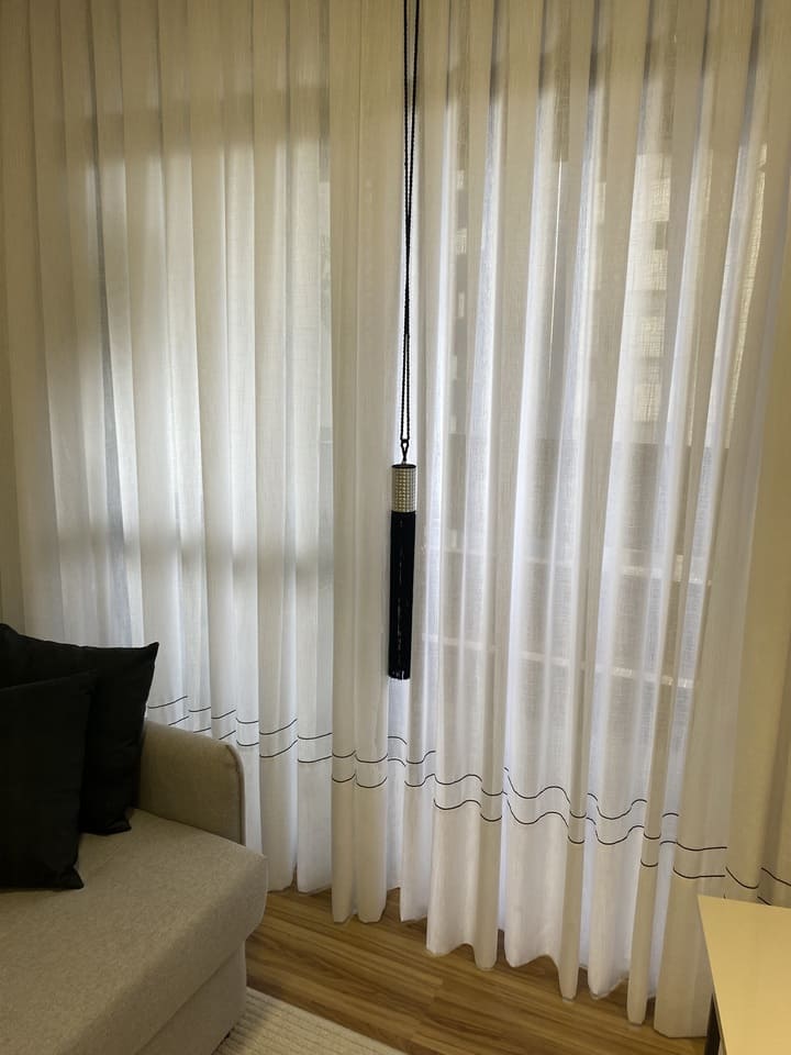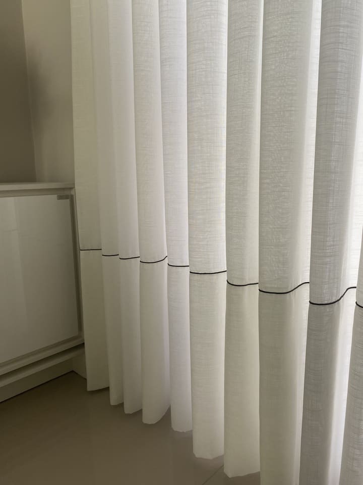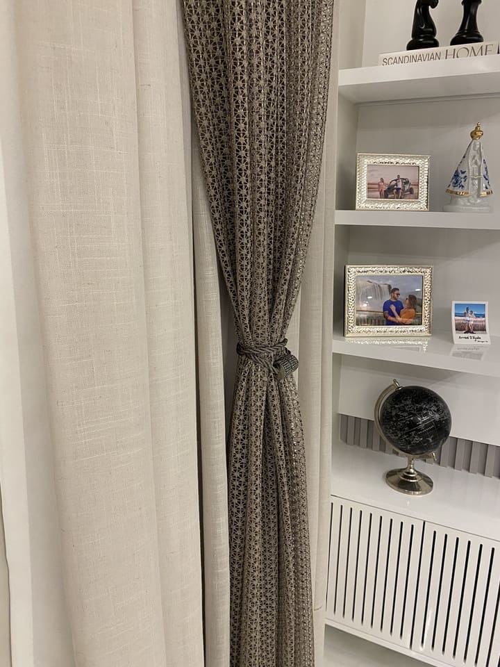 Os xales telados estão super em alta devido ao toque de sofisticação e leveza que dão as cortinas, por serem um tecido leve e furadinho deixam seu ambiente decorado e clean. A peça é colocada em frente a cortina sendo menos que a cortina na largura, pode ser adicionado um pingente ou cordão decorativo para juntar a peça, ou deixar solto.