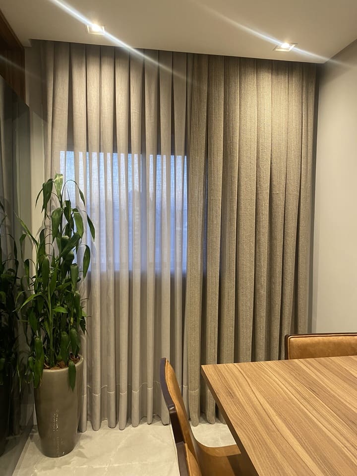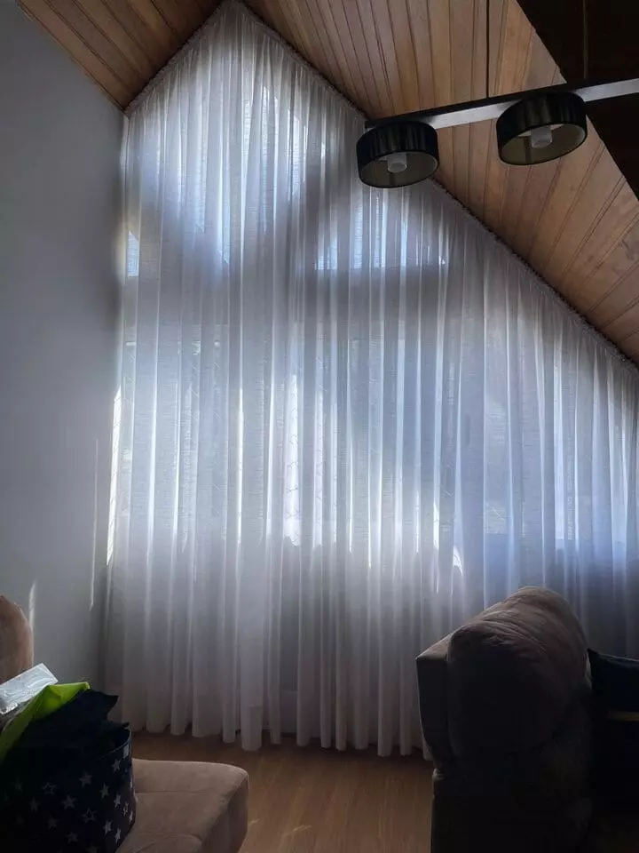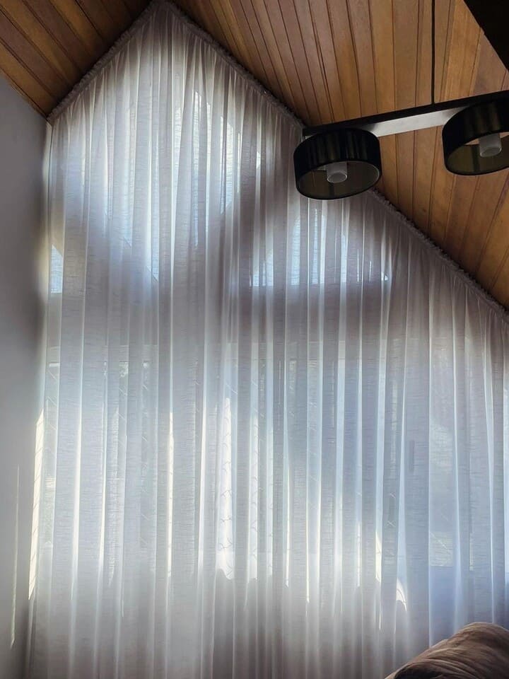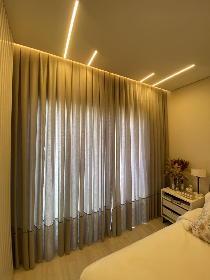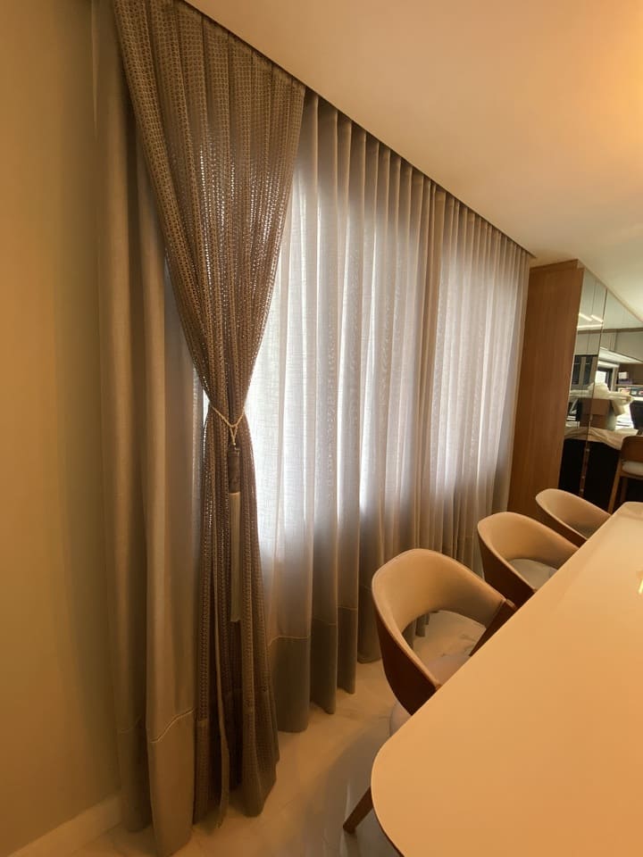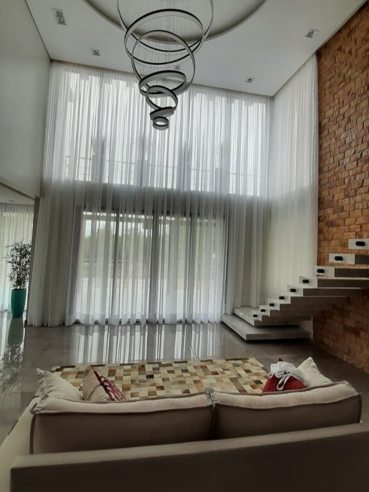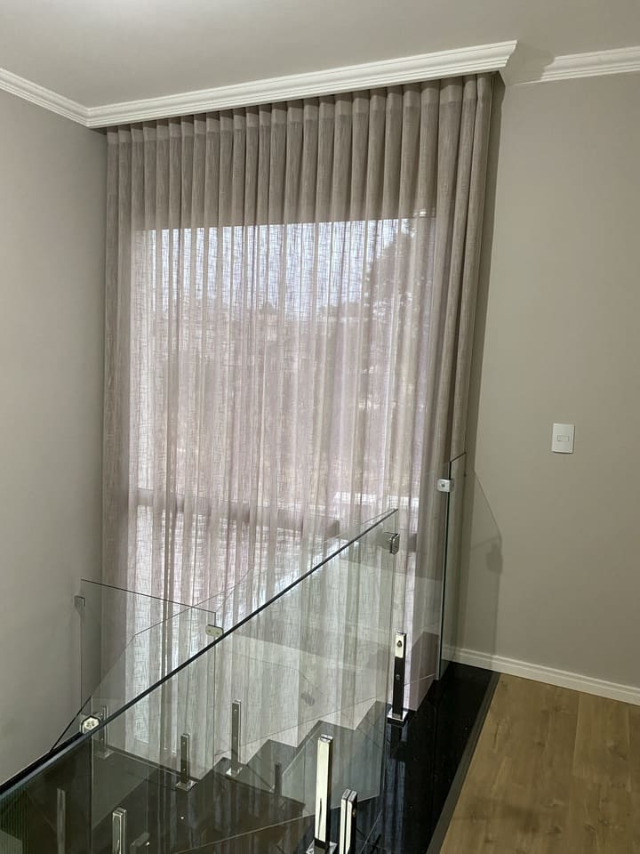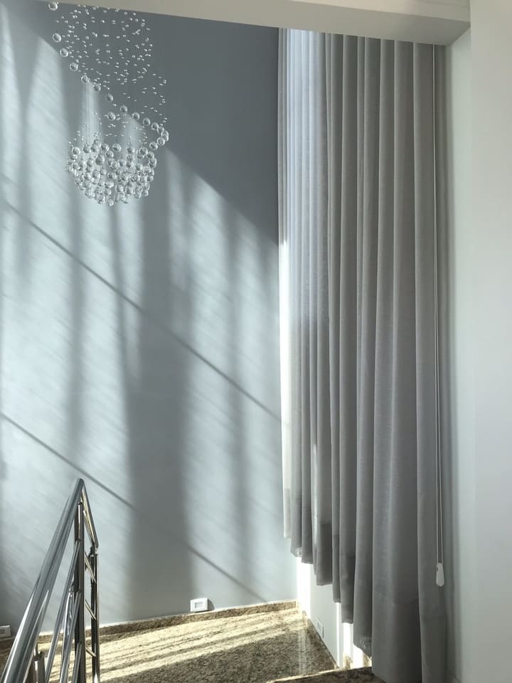 As cortinas altas feitas para casas os apartamentos com pé direito duplo ou triplo são a melhor opção para privacidade e decoração, podem ser de acionamento manual, monocomando (cordinha) ou motorizadas. Por ser sob medida ficam lindas e com um perfeito caimento.
