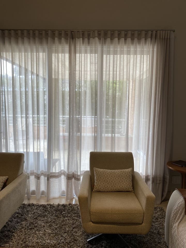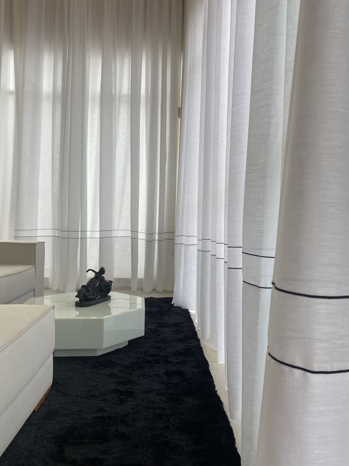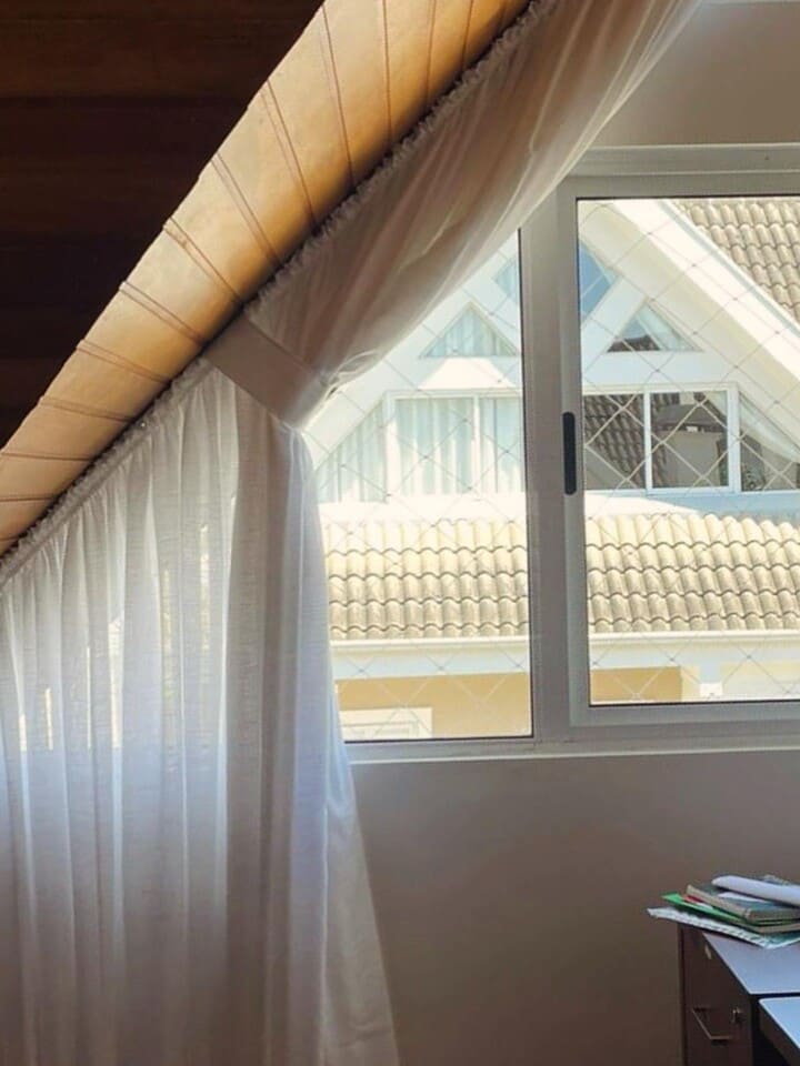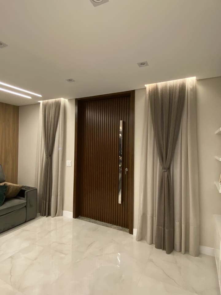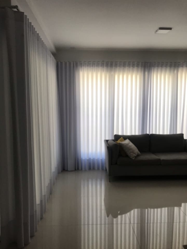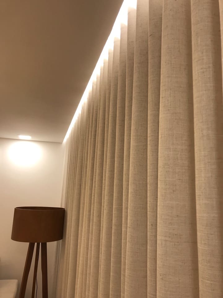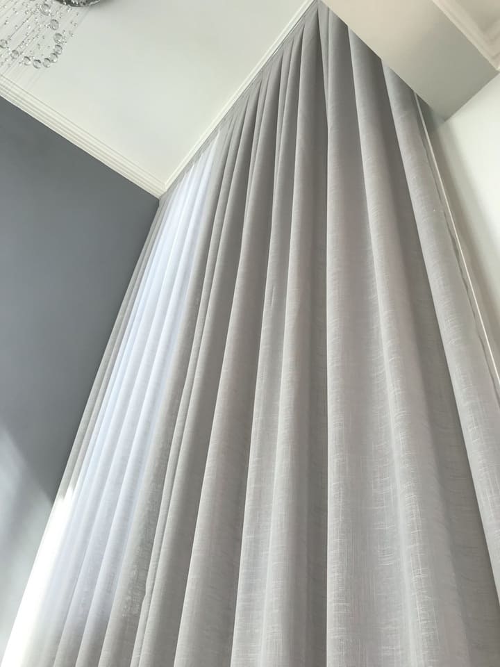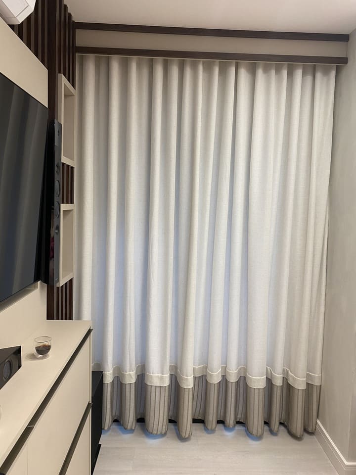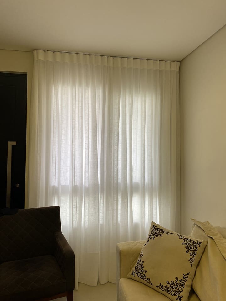 As cortinas altas feitas para casas os apartamentos com pé direito duplo ou triplo são a melhor opção para privacidade e decoração, podem ser de acionamento manual, monocomando (cordinha) ou motorizadas. Por ser sob medida ficam lindas e com um perfeito caimento.