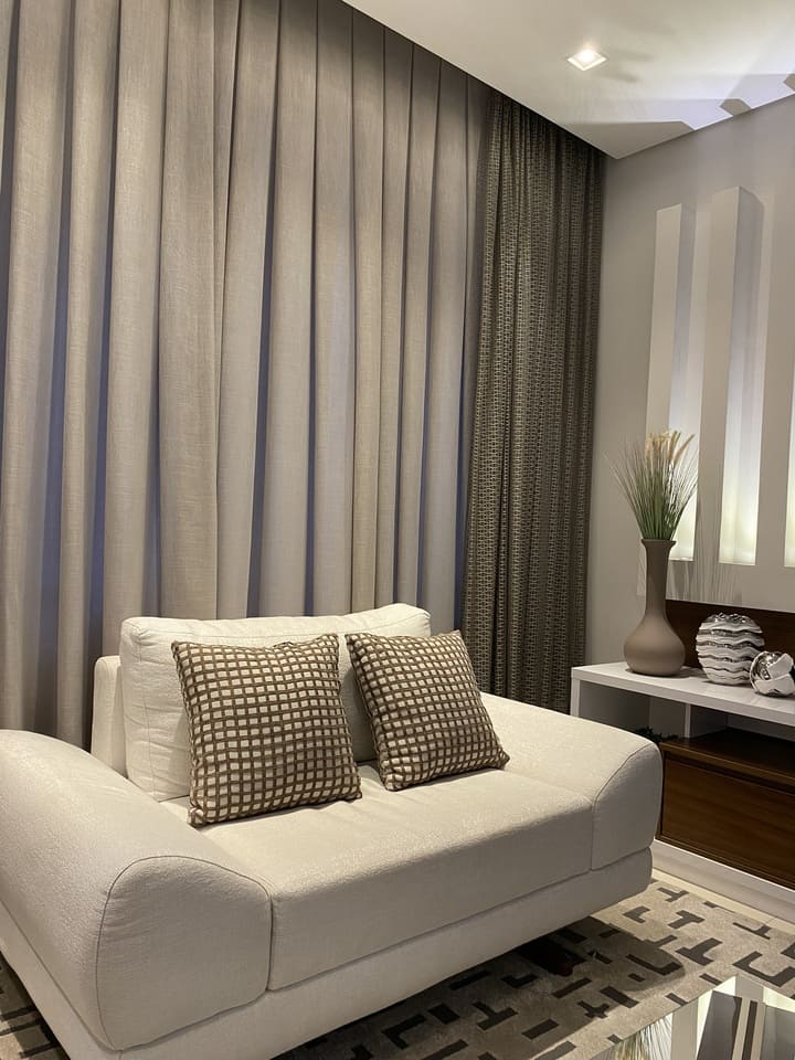 As cortinas e persianas motorizadas facilitam a vida de qualquer um, o conforto e modernidade na palma de suas mãos. Já imaginou você deitado no sofá e sem levantar acionar suas cortinas e persianas? Além disso ela é indicada para peças grandes devido ao peço.
